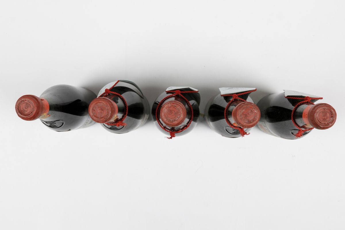(abrasioni, macchie e mancanze sulle etichette, capsule con segni d'usura del tempo) 16 bottiglie di colore bianco depigmentato