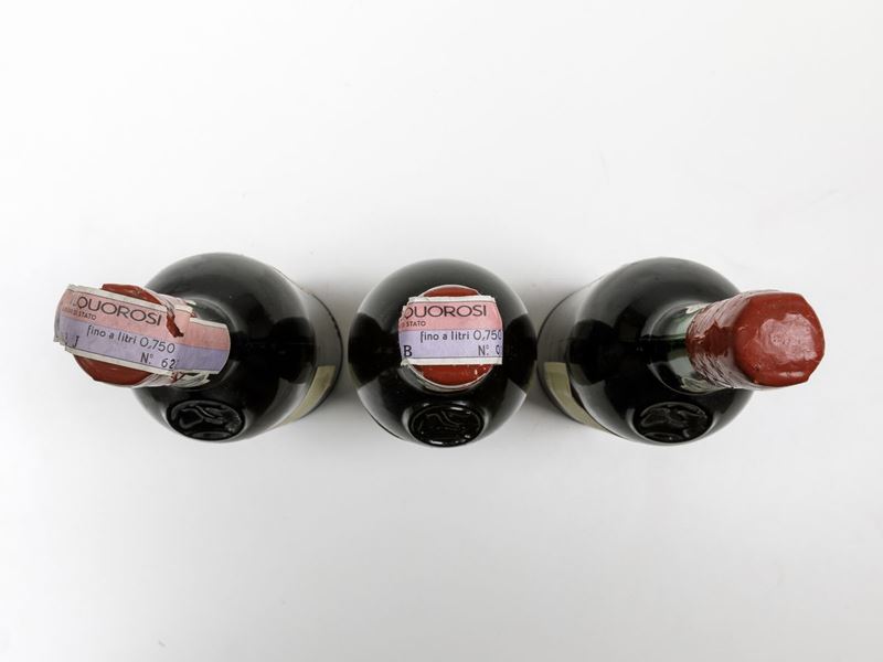 (etichette e capsule con segni d'usura del tempo) I lotti contrassegnati con (*) sono stati affidati da soggetti I.V.A. e pertanto le fatture verranno emesse con I.V.A. esposta. L’acquirente pagherà come di consueto il prezzo di aggiudicazione più il corrispettivo d’asta, pari al 25% The lots marked with (*) have been entrusted by V.A.T. subjects and therefore the invoices will be issued with V.A.T. exposed. The buyer will pay as usual the auction price plus the auction fee, equal to 25%