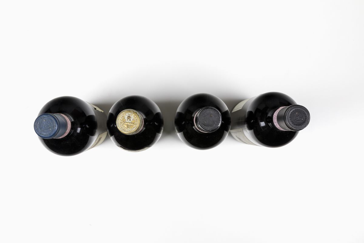 (abrasioni, macchie sulle etichette, capsule con segni d'usura del tempo)