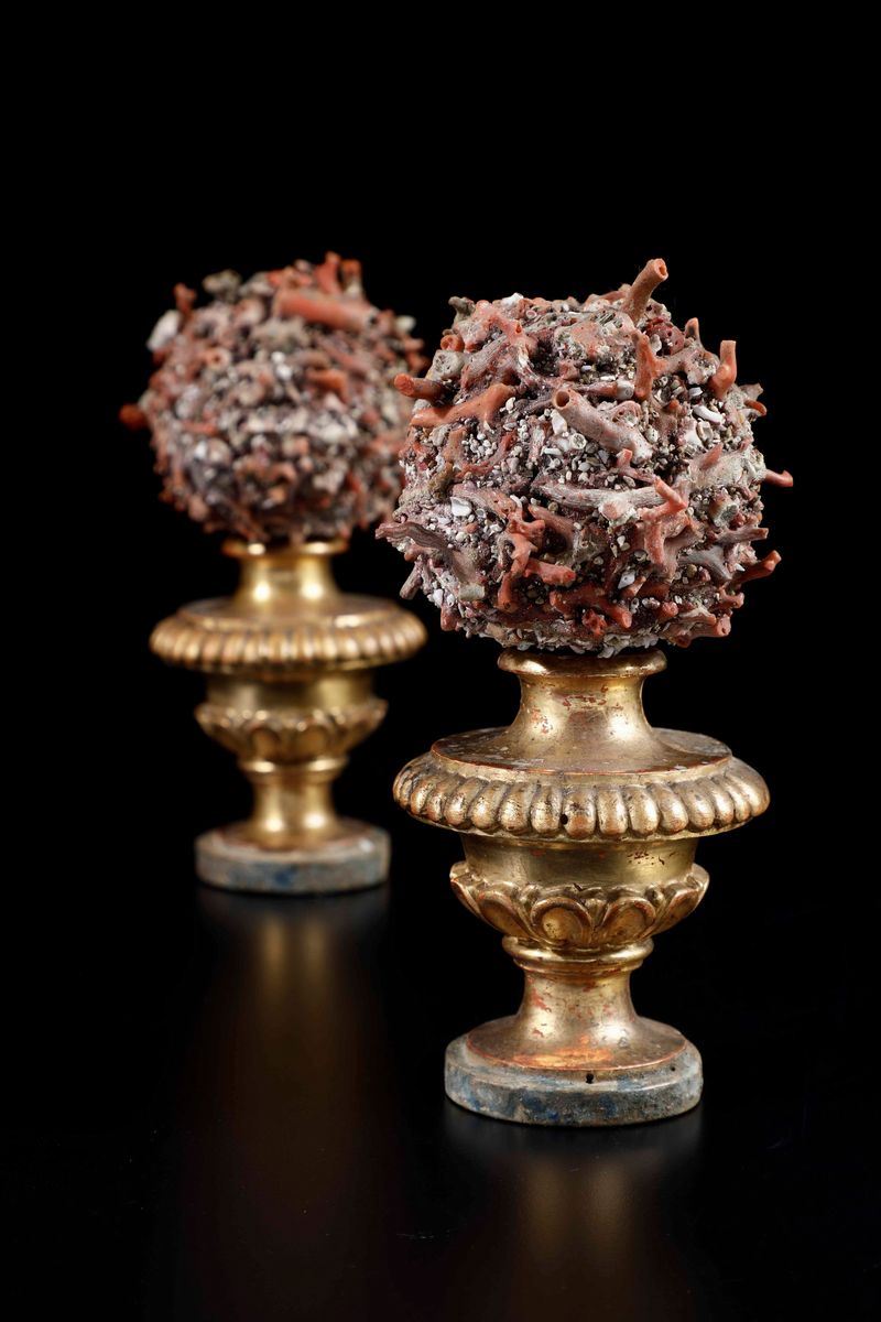 corallo rosso grezzo, su basi intagliate altezza cm 21