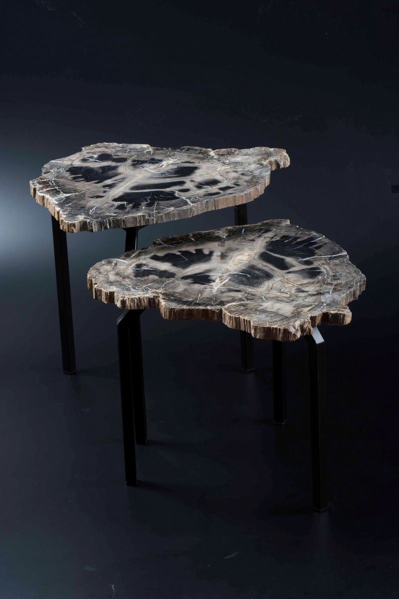 Coppia di tavolini in legno fossile