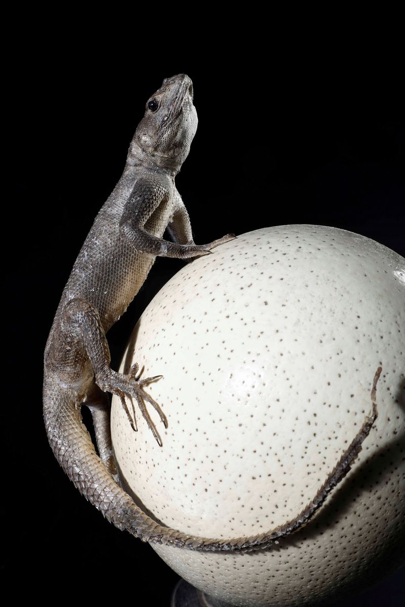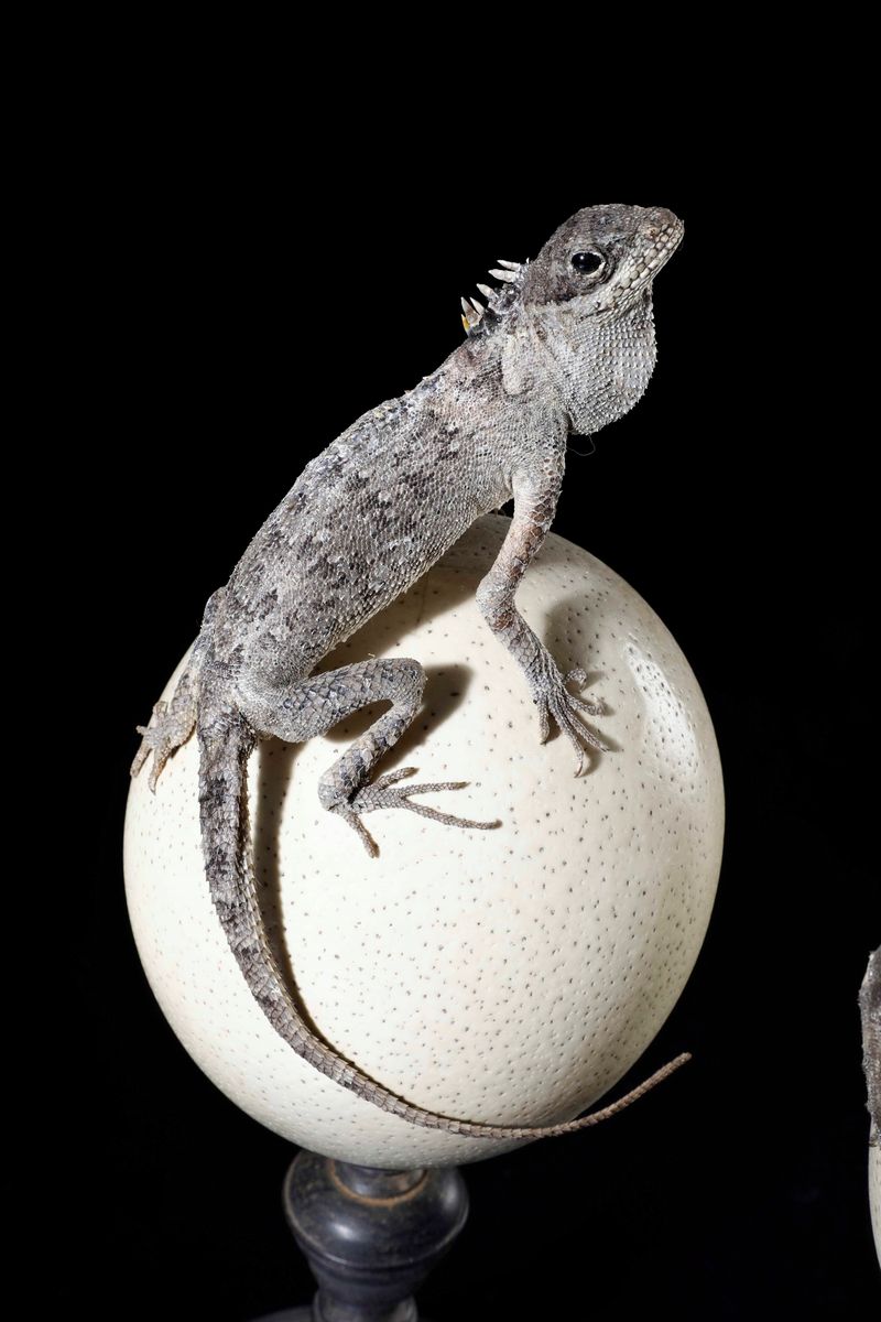 Coppia di uova di struzzo con lucertole
