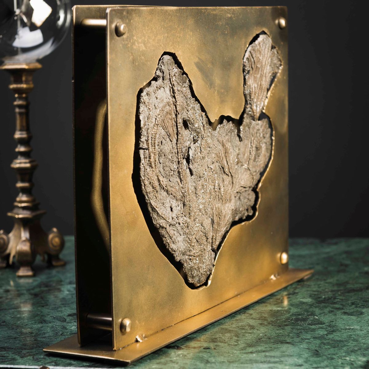 Crinoide in cornice di ottone