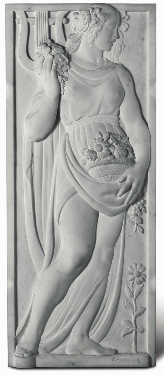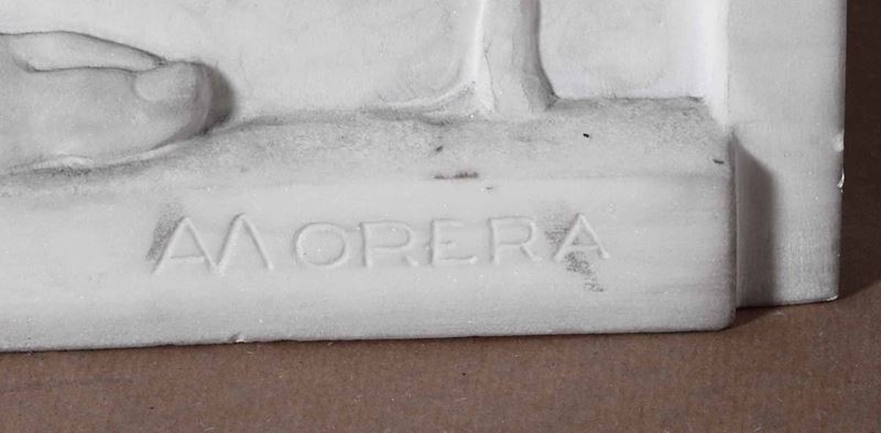 bassorilievo in marmo statuario, cm 108x44, firmato in basso a destra