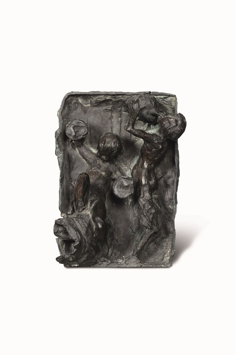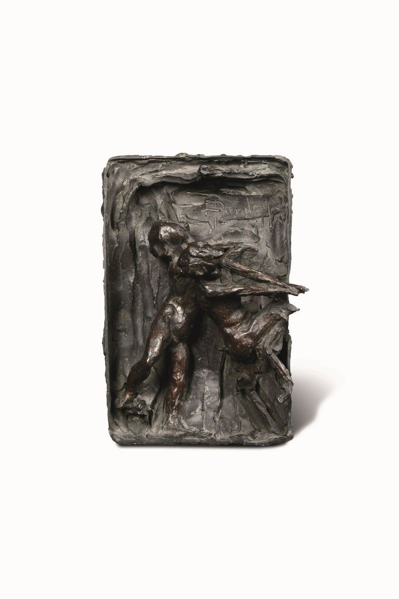 trittico in bronzo, cm 37x103, cm 37x25, cm 37x25, firma incussa