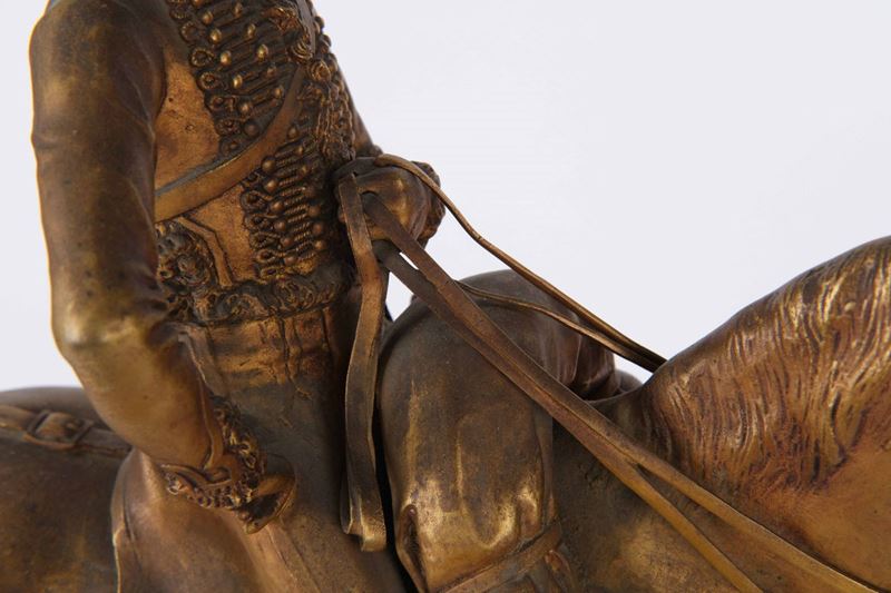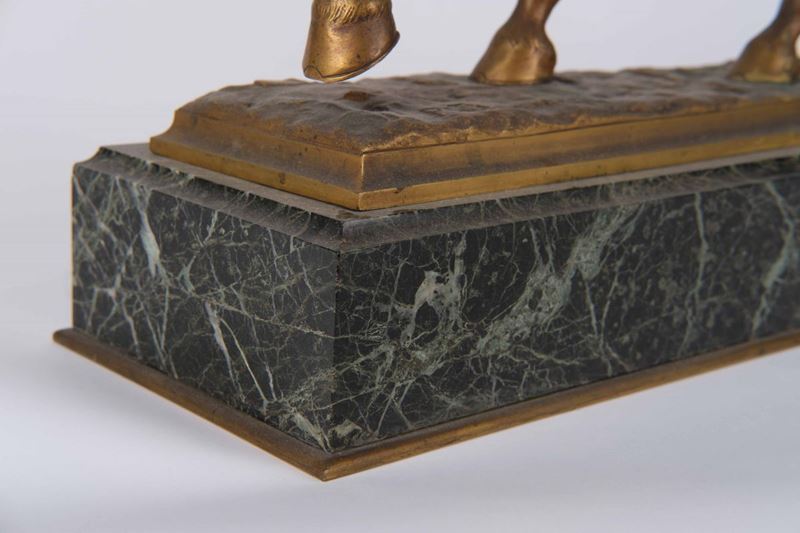 bronzo dorato su base di marmo, cm 61x47. Firma incussa alla base