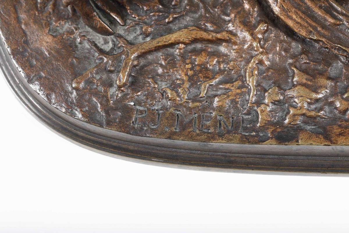 scultura in bronzo, cm 37x36x14, firma incisa alla base P.J. Mene
