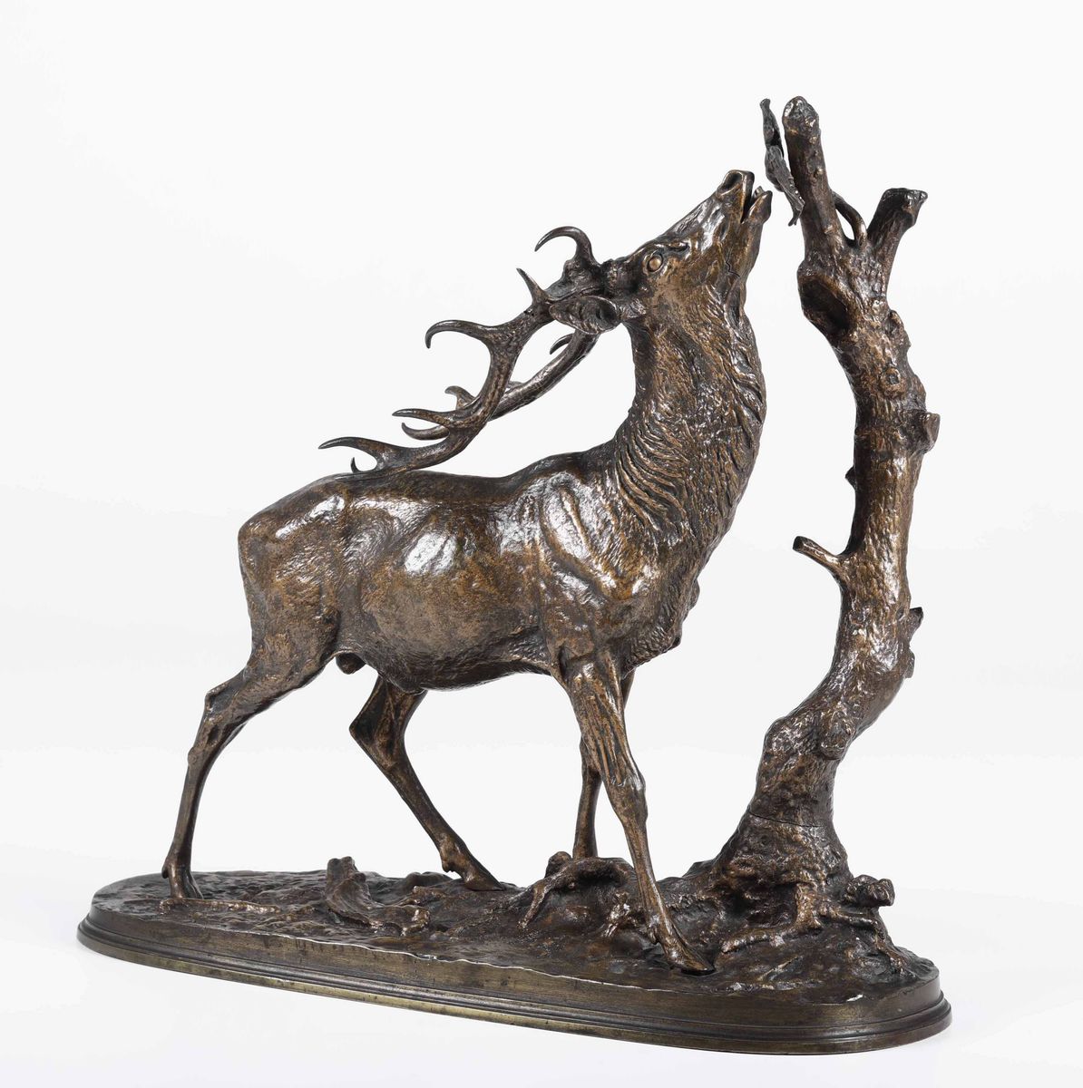 Pierre-Jules Mene (1810-1879) Cervo che bruca le foglie da un ramo