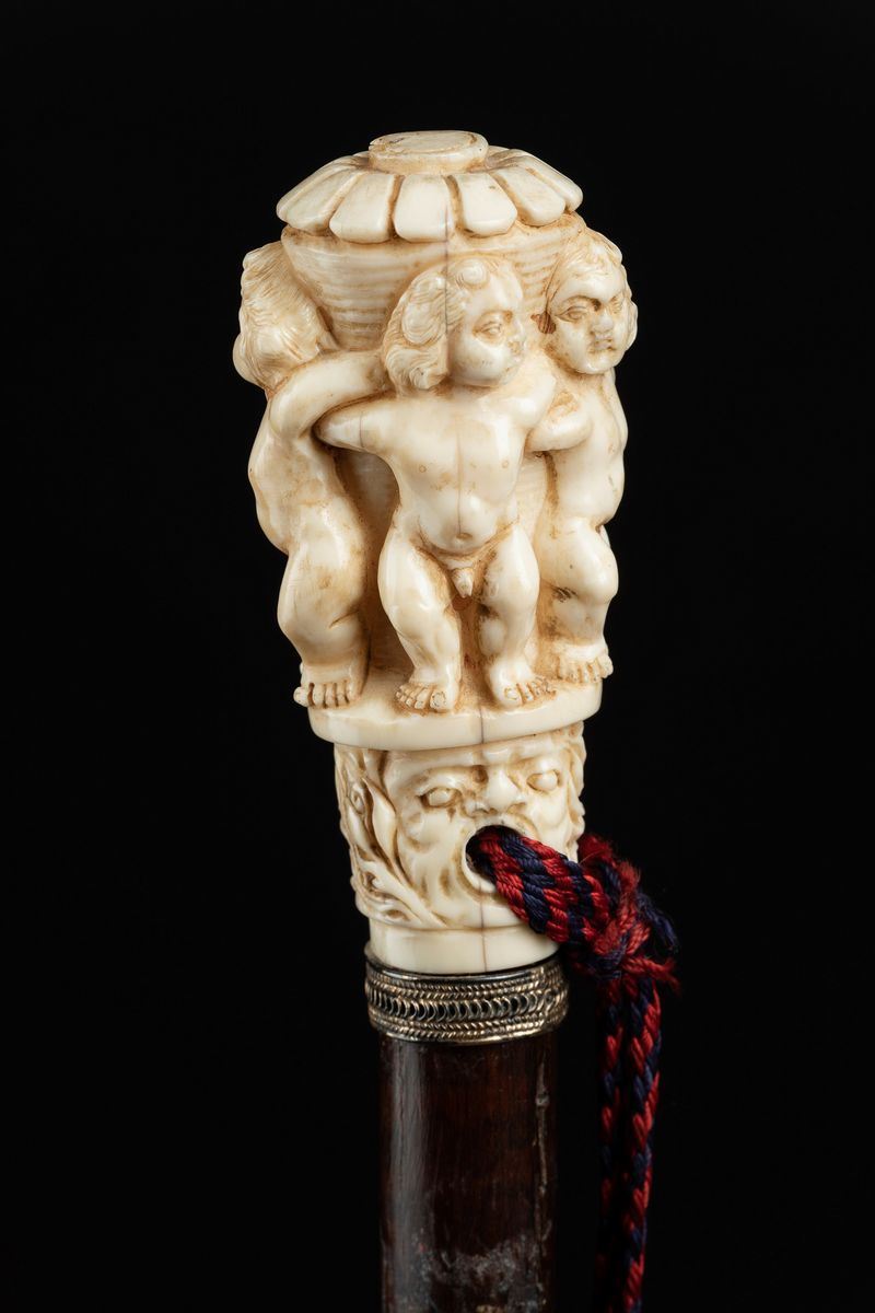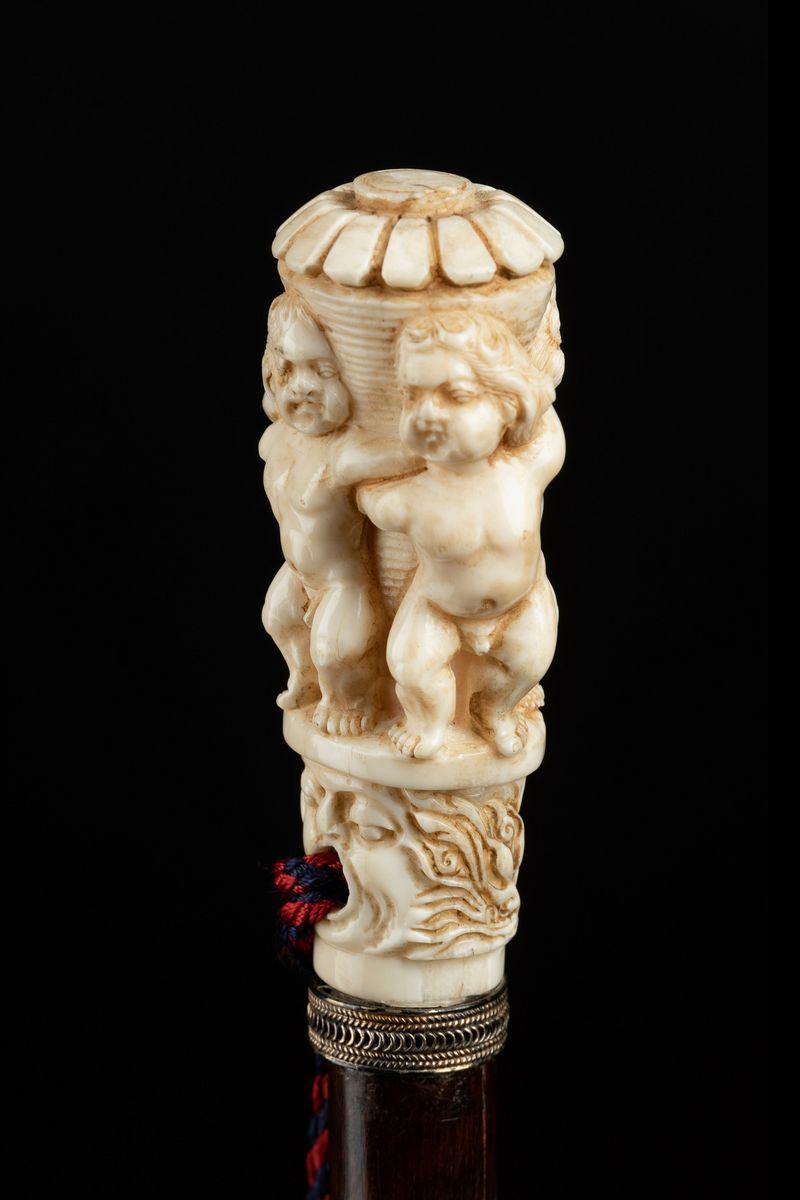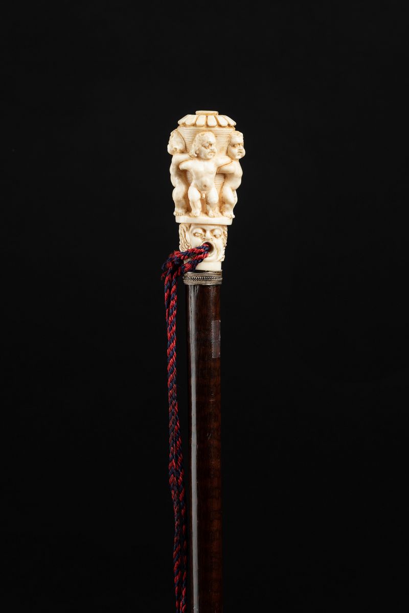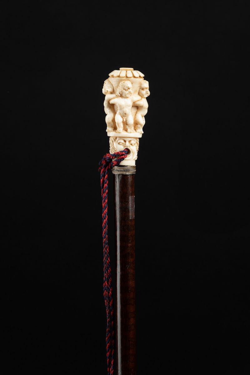Bastone con impugnatura in avorio, con putti e mascherone, Inghilterra, fine XIX secolo