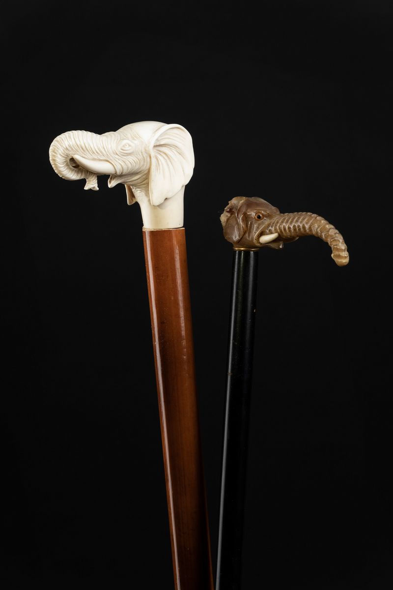 - Impugnatura in avorio raffigurante testa di elefante. Asta in malacca. Puntale in ferro.