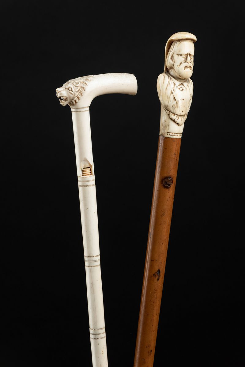 Lotto composto da due bastoni da passeggio in avorio, Inghilterra/Italia, fine XIX-inizi XX secolo
