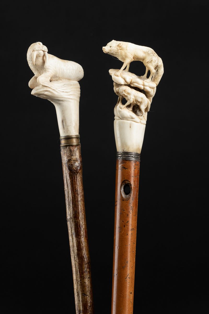 Lotto composto da due bastoni da passeggio in avorio e in osso, Europa, fine XIX secolo