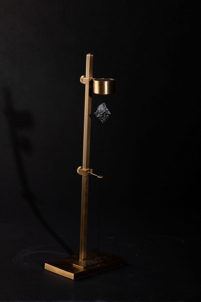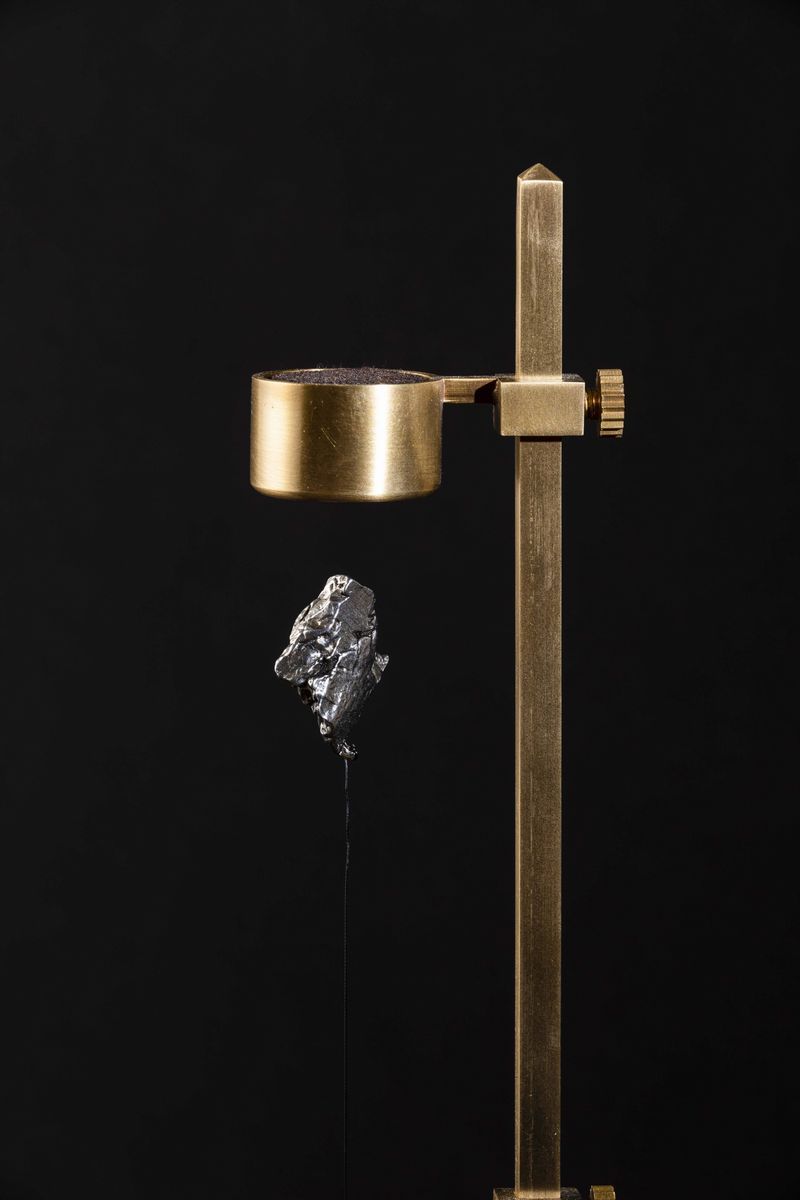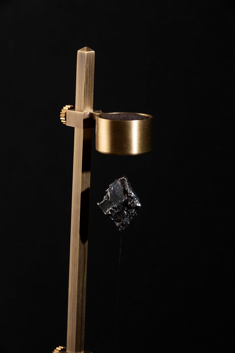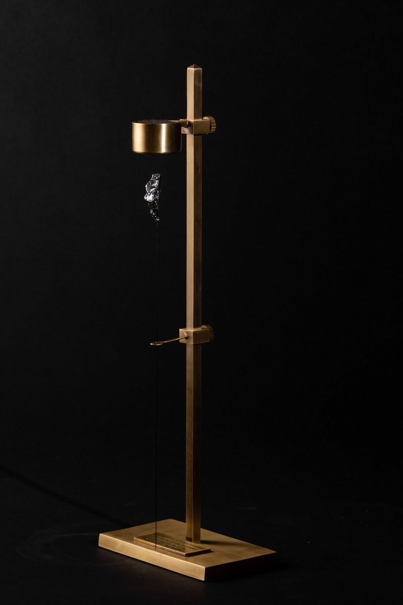 A brass mechanism created to launch a siderite, which is a meteorite containing iron.