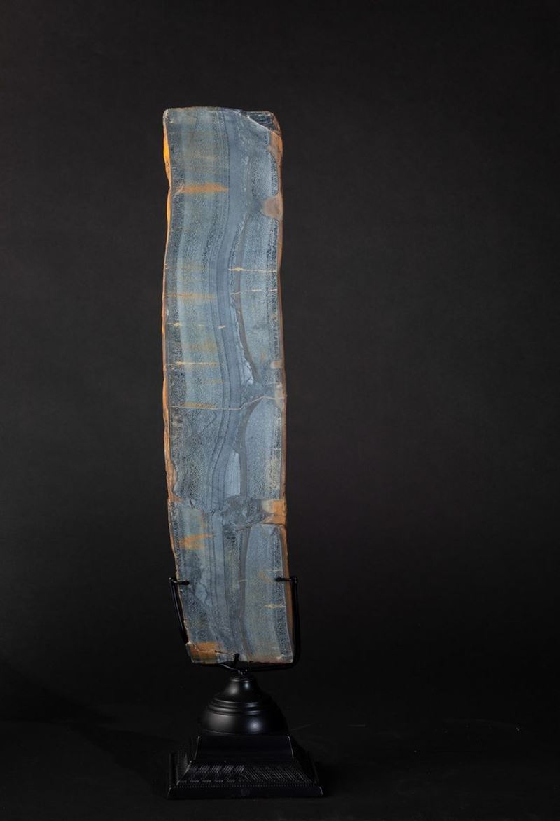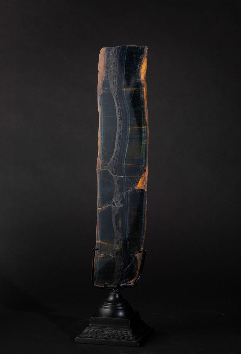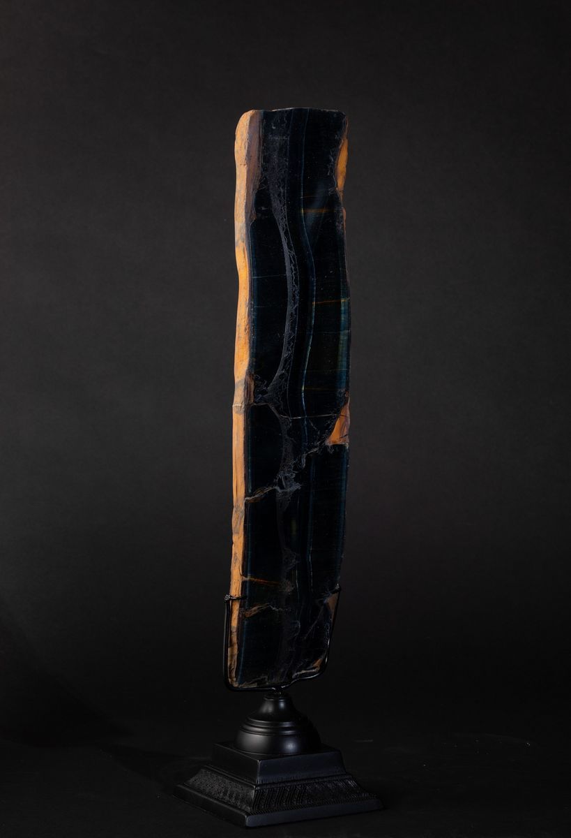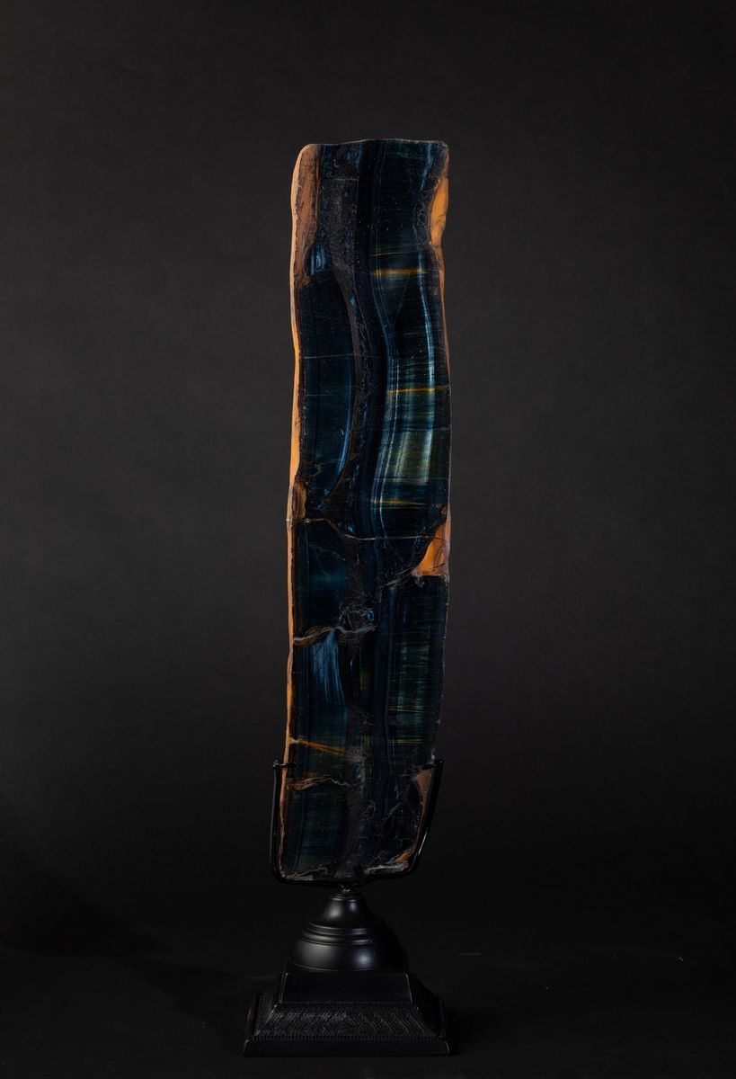 This dark, blue-green piece comes from a South African mineral: Tiger eye.