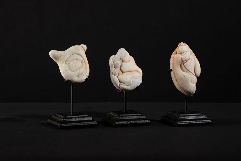 Sandstone concretion of pure siliceous sand, two gogottes H 14 cm and one H 13 cm including base