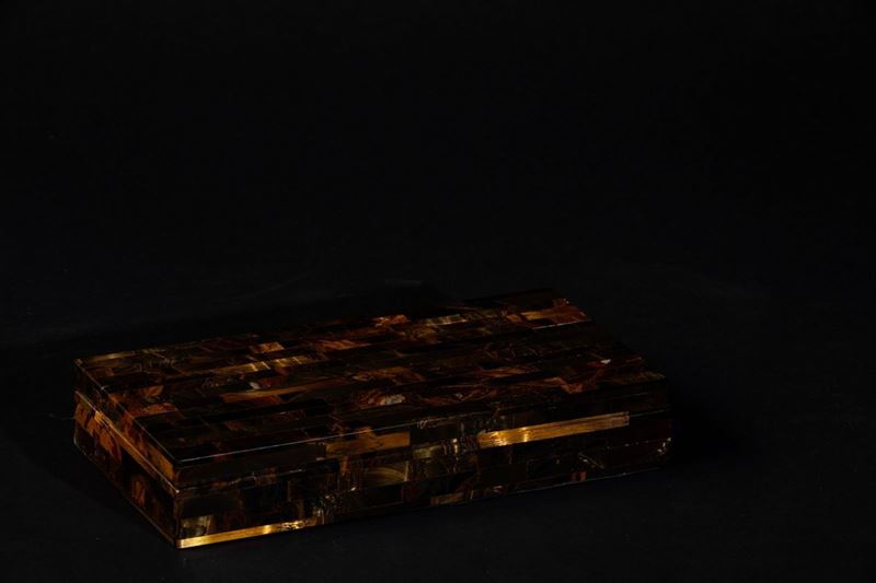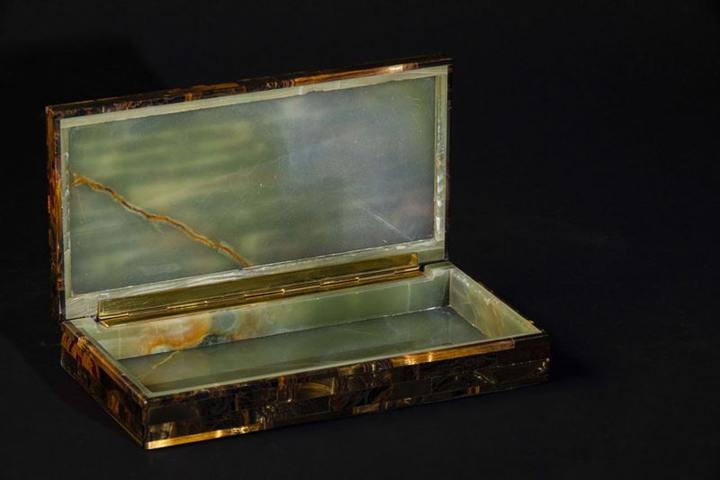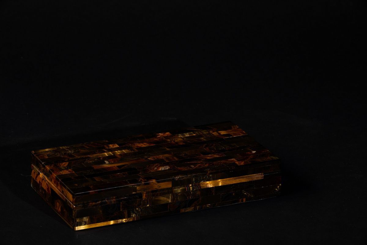 Tiger's eye chest with mosaic tiles and marble interiors, 21st century