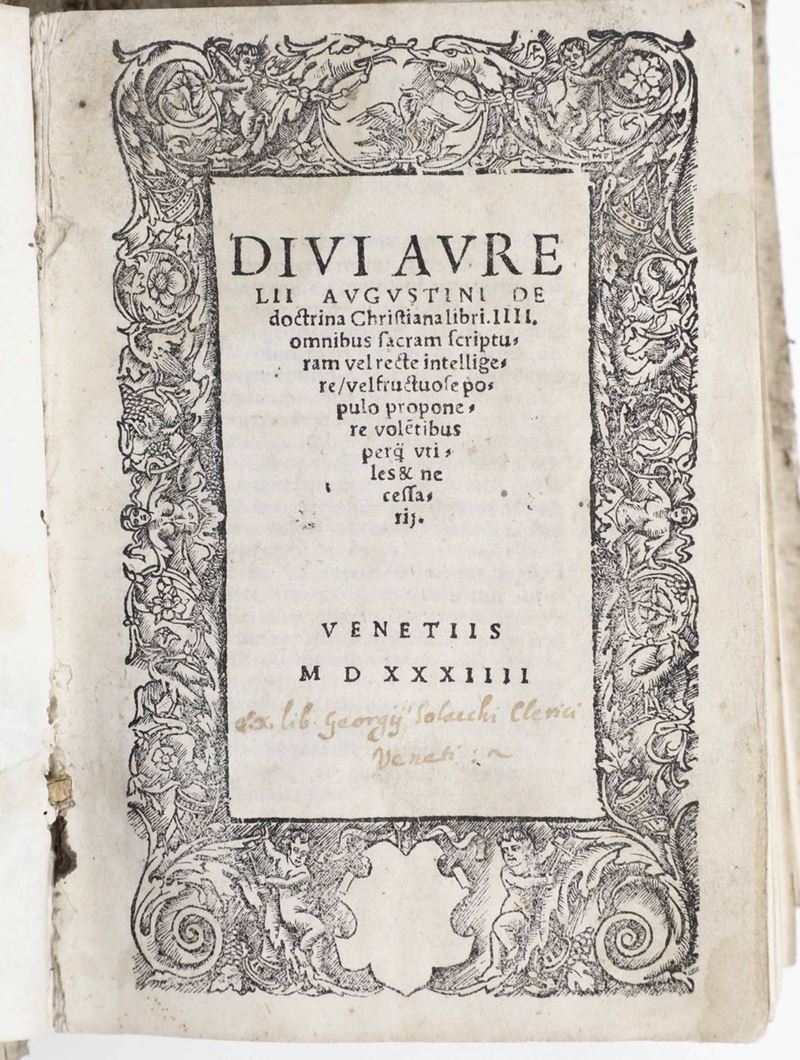 Divi Aurelii Augustini...De Doctrina Christiana lib. IIII...Venezia, 1534