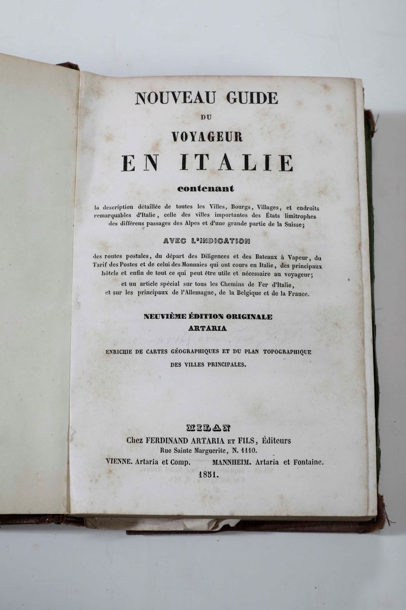 Artaria, Ferdinando (e figli) Nouveau Guide du voyageur en Italie...Milano,1851