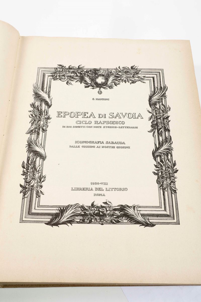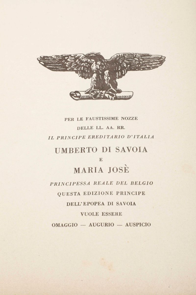 Autori Vari. Epopea dei Savoia. Ciclo rapsodico di 500 sonetti...Per le faustissime nozze di Umberto di Savoia e Maria Josè...Roma,Libreria del Littorio,1930