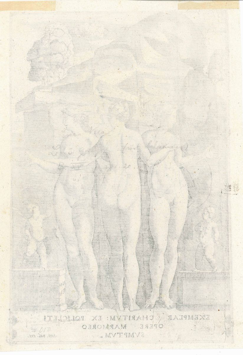 La prova, nitida e ben contrastata, nel II stato di 2 edita dal Salamanca, è impressa su carta avente filigrana Pellegrino nel Cerchio databile tra il 1532 e il 1549. L'iconografia si ispira ad un antico bassorilievo. Bibliografia: Bartsch, n. 20; Raphael Invenit, p. 266; Ferrara-Bertelà, n. 498; Filigrana: Briquet, n. 7567