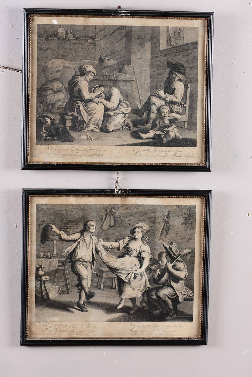 Quattro incisioni di Giovanni Volpato raffiguranti scene di vita rustica da Francesco Maggiotto