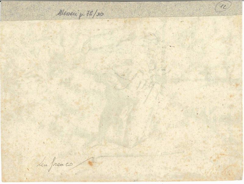 La prova è impressa su carta avente filigrana Stemma con tiara e spada tipica dei primi del Seicento. Firmata Giovanni L.F. e numerata 33, appartiene alla celebre serie di 52 scenette bibliche dipinte da Raffaello nelle Logge Vaticane ed eseguite dal Lanfranco insieme alla collaborazione di Sisto Badalocchio fra il 1605 e il 1607. Bibliografia: Bartsch, n. 17; Massari, p. 78, n. 30