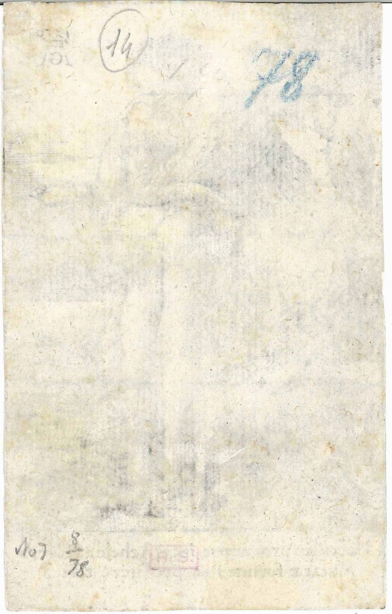 La prova ben contrastata, nell'unico stato conosciuto, è impressa su carta databile alla metà del Cinquecento. Appartenente alla serie di 13 bulini Le fatiche di Ercole, l'opera raffigura la mitica lotta tra Ercole e Acheolo, figlio di Oceano e Teti, entrambi contendenti della bella Dianira, figlia del re di Calidone. Al verso un timbro di collezione recita R.S. Bibliografia: Bartsch, n. 85; Hollstein, n. 85; Ex coll. Lugt, n. 2239/B