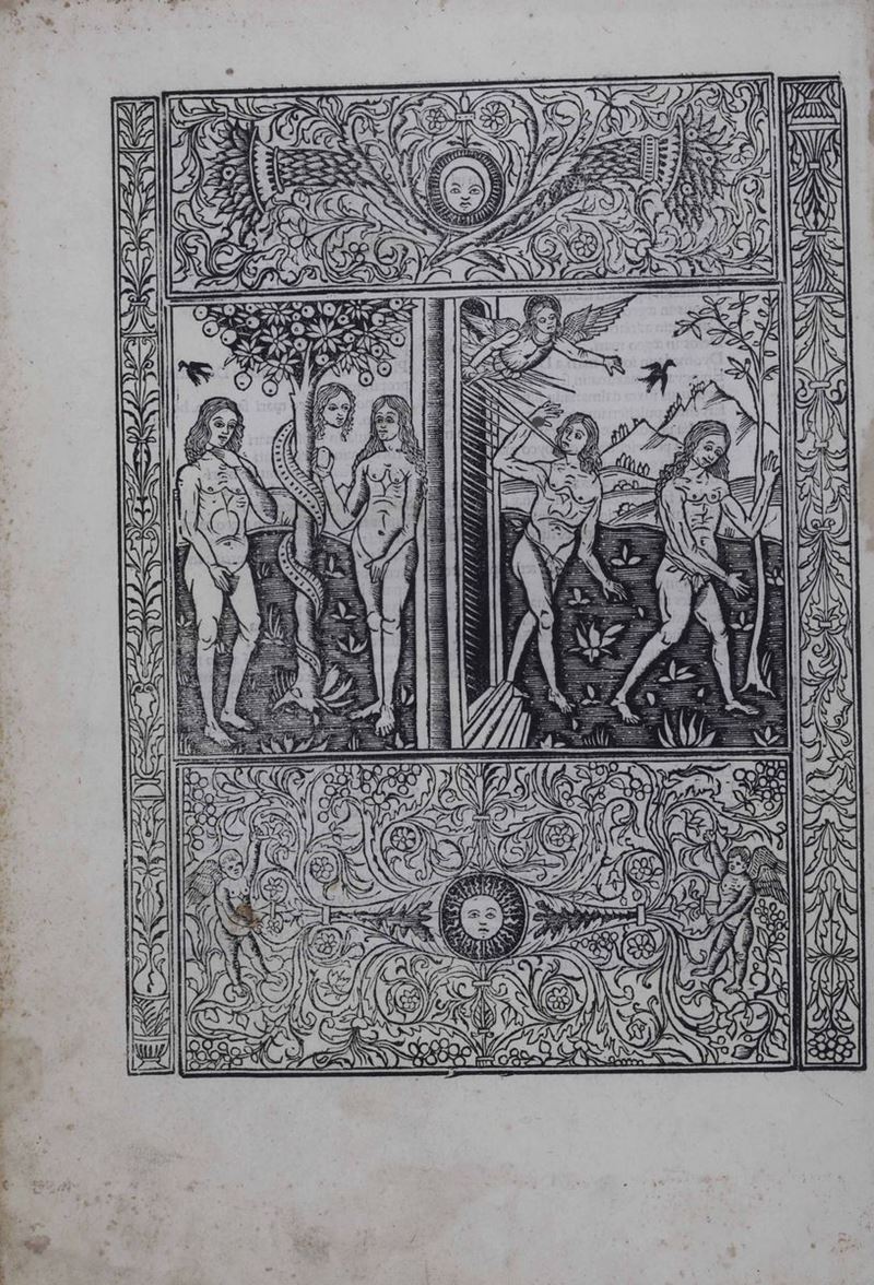 Bella impressione xilografica proveniente presumibilmente da edizione della fine del XV sec. o ristampe di poco successive, di Jacobus Philippus Bergomensis-Supplementum chronicarum.
