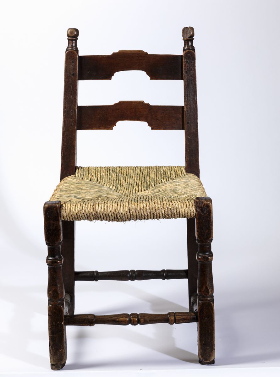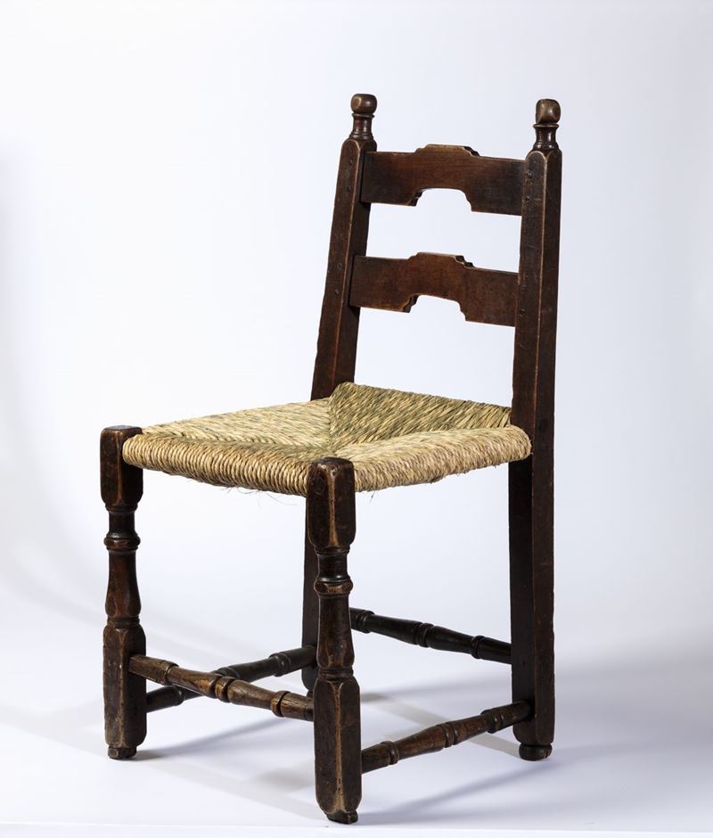 Sedia in noce con gambe anteriori a rocchetto, XVII secolo