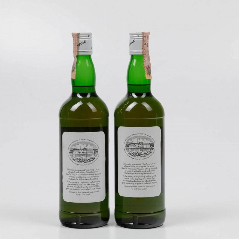 (etichette e capsule con segni d'usura del tempo e di umidità) imbottigliatore Johnston & Co. a Laphroaig importato da Francesco Cinziano