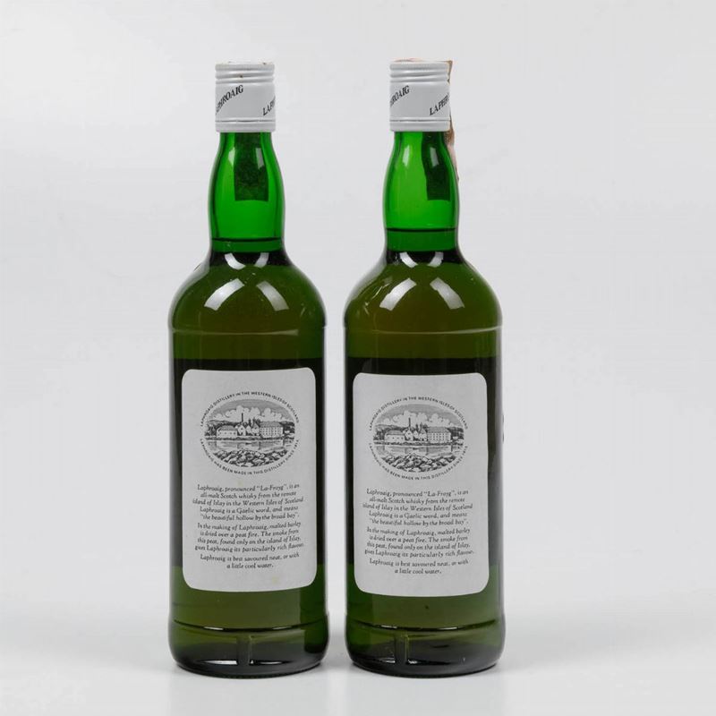 (etichette e capsule con segni d'usura del tempo e di umidità) imbottigliatore Johnston & Co. a Laphroaig importato da Francesco Cinziano