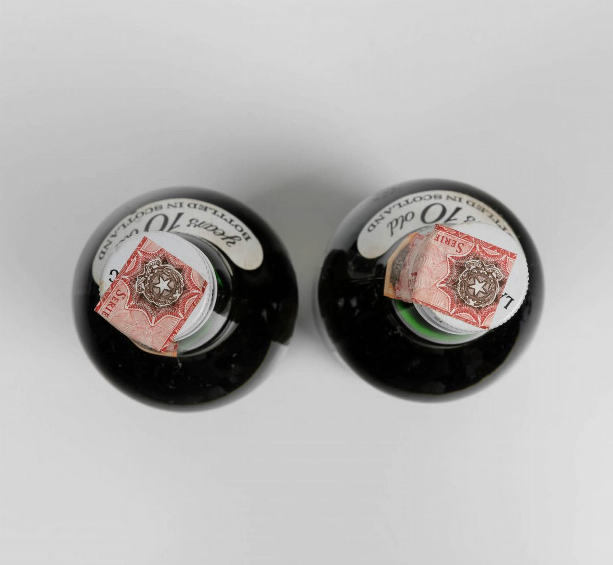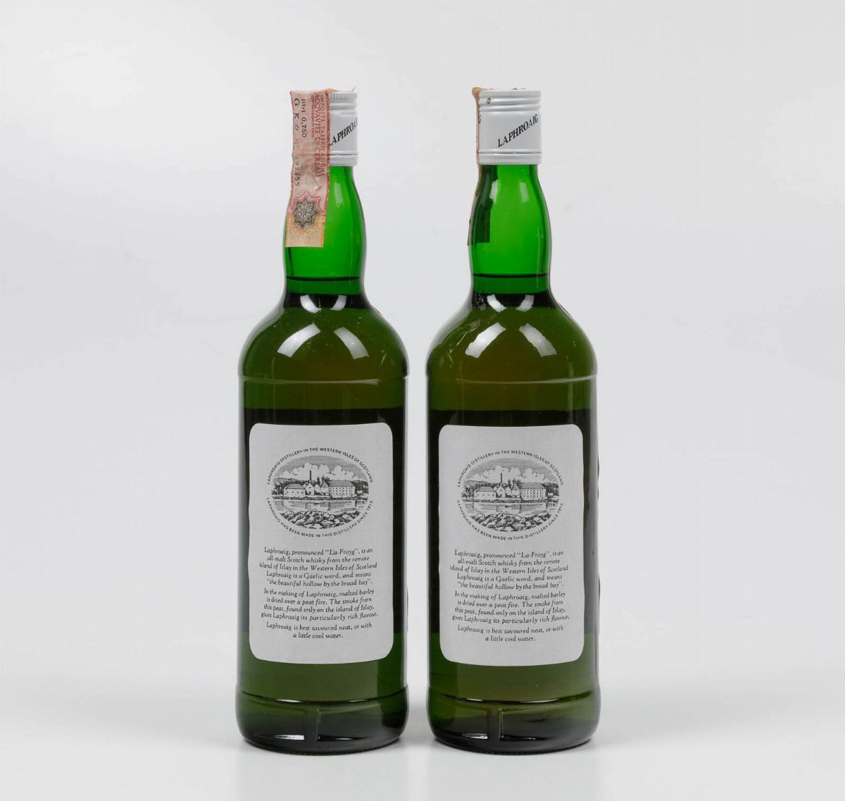(etichette e capsule con segni d'usura del tempo e di umidità) imbottigliatore Johnston & Co. a Laphroaig importato da Francesco Cinziano