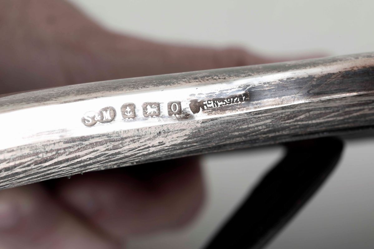 Due cornici porta foto in argento. Cornice tonda, Argentieri Bartolini e Bartolozzi, Firenze XX secolo Cornice sagomata. Birmingham 1938