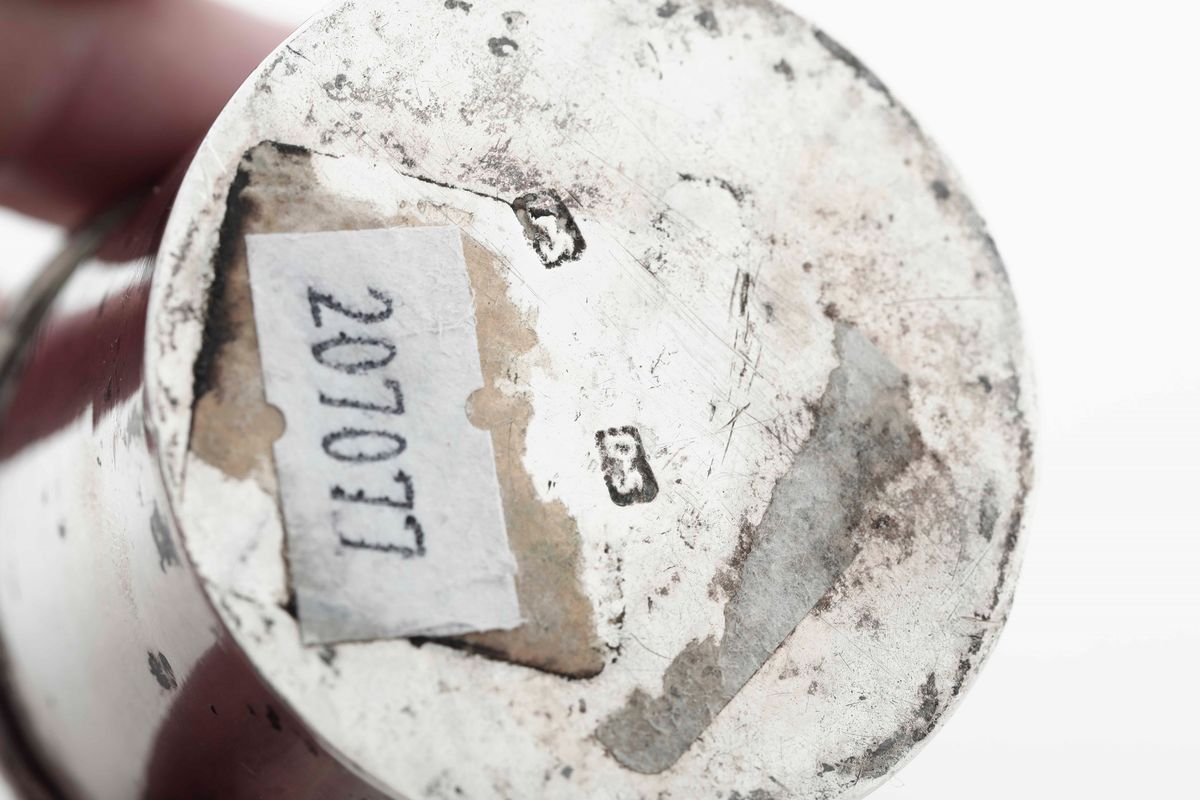 Due elementi cilindrici in argento sbalzato e traforato. Stato Pontificio (?) XIX secolo (bolli consunti di difficile let [..]