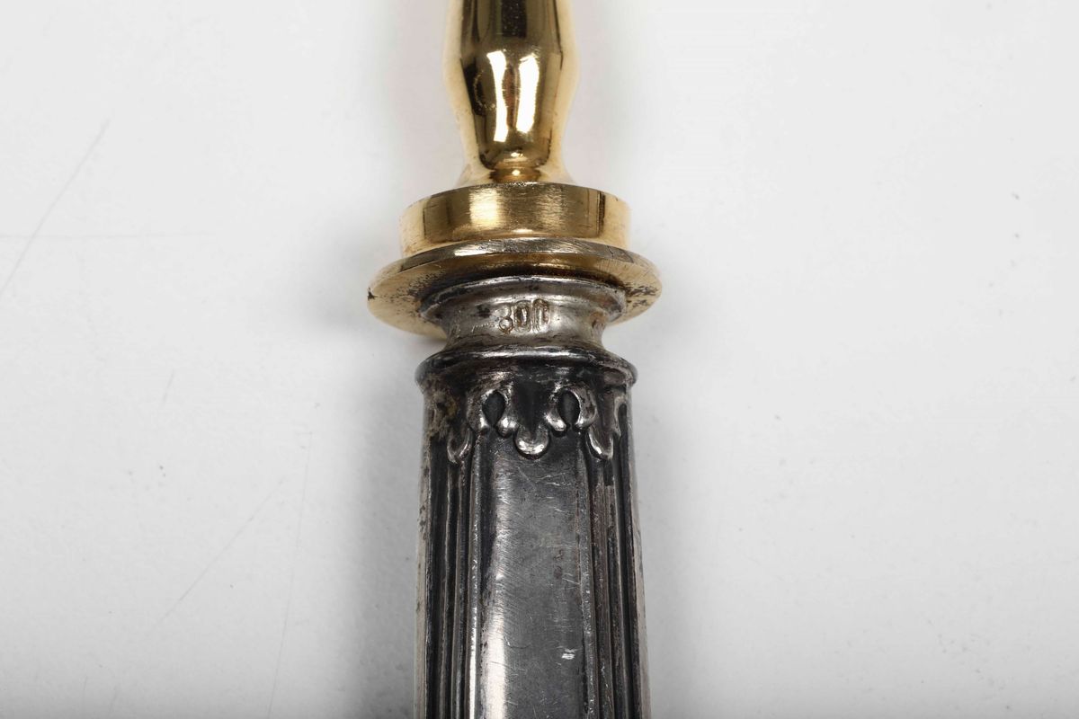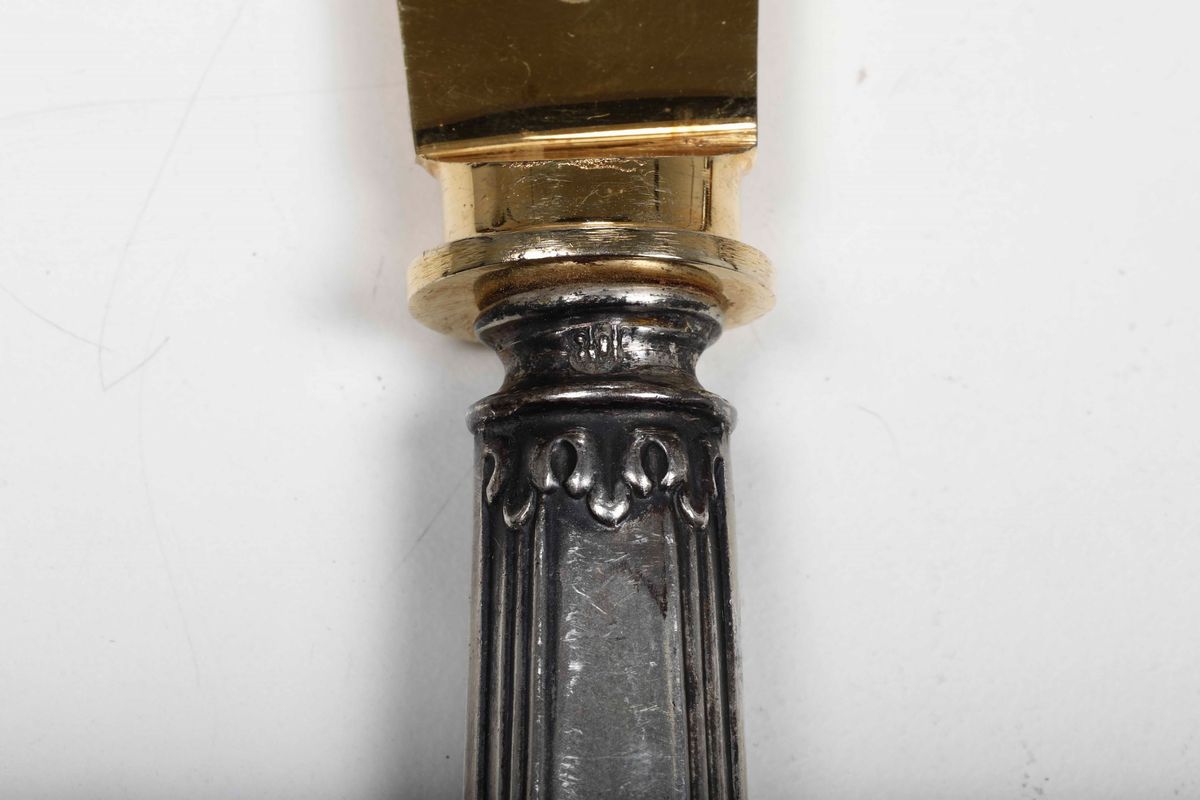 Forchetta e coltello da portata con manici in argento. Italia XX secolo