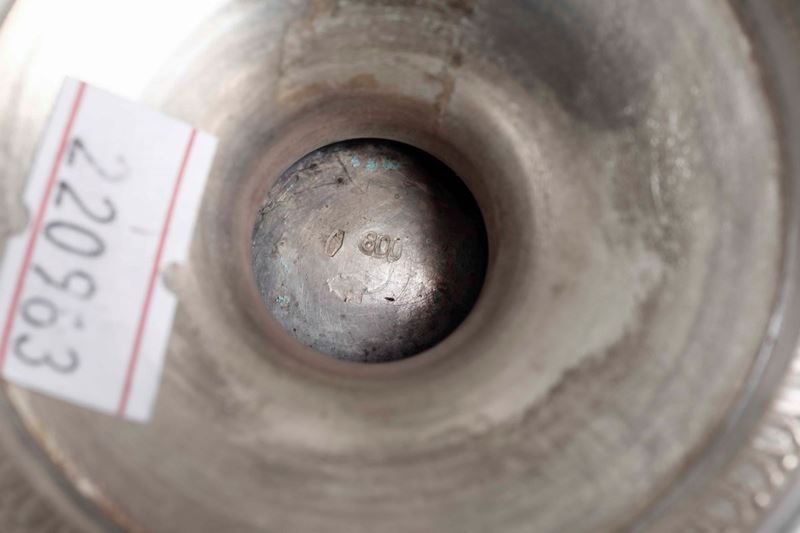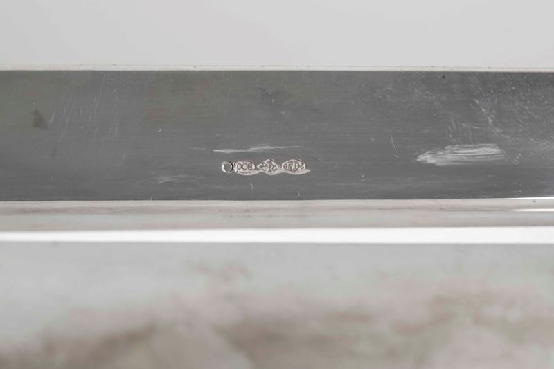 Lotto composto da un versatoio e una alzata rettangolare stile Impero e un cachepot trilobato in argento. Varie manifatture italiane del XX secolo