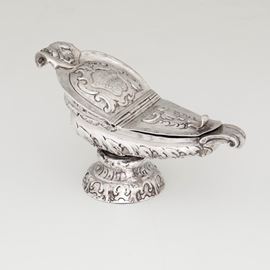 Navicella in argento fuso, sbalzato e cesellato. Napoli XVIII secolo