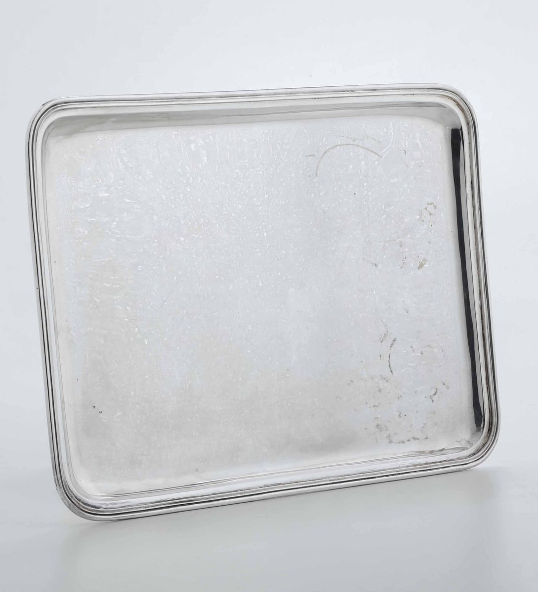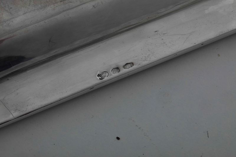 Vassoio rettangolare in argento. Italia XX secolo. Argentiere Petruzzi e Branca, Brescia