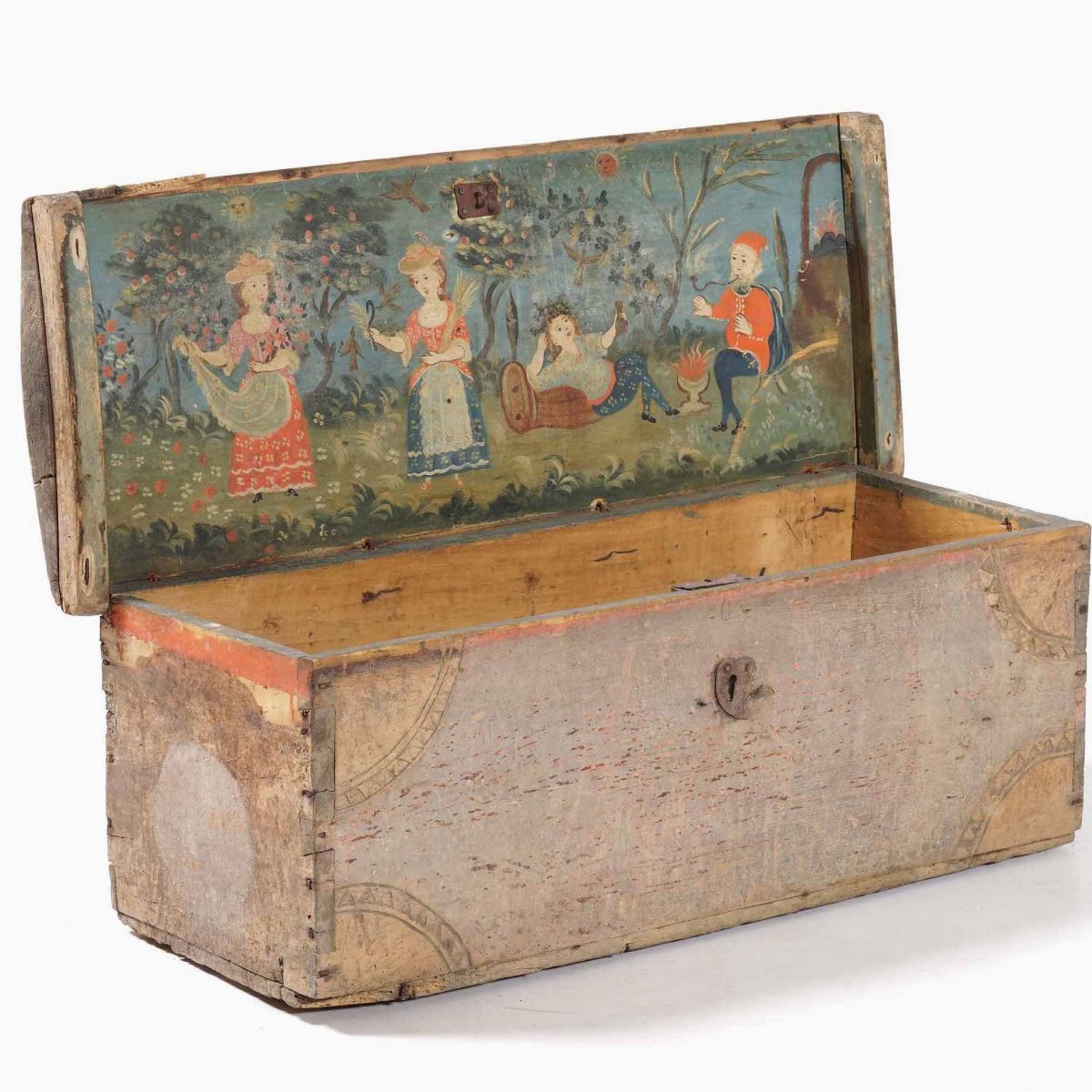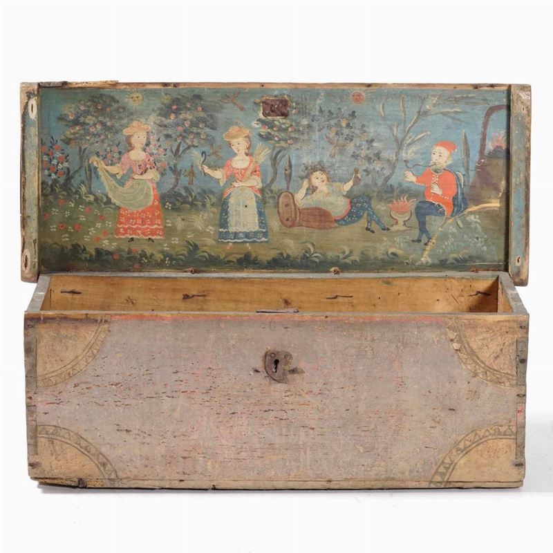 Cassa da marinaio con coperchio dipinto. XIX secolo