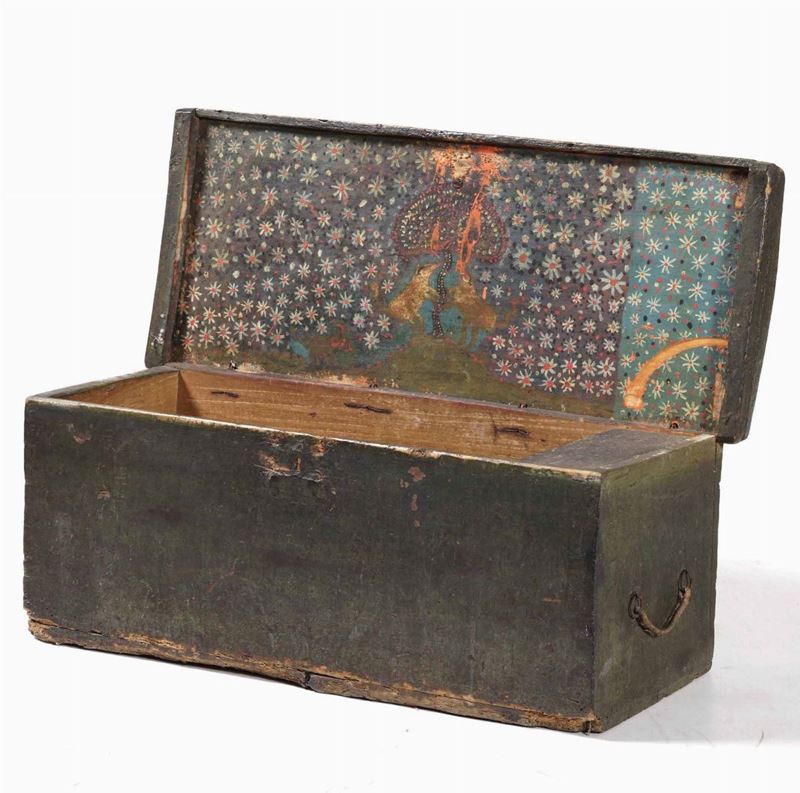 Cassa da marinaio con coperchio dipinto. XIX secolo