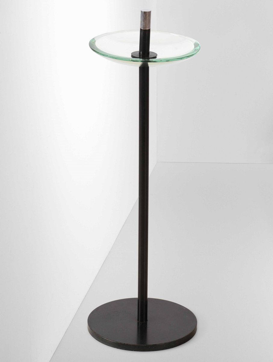 Portacenere mod. 2087 con struttura in ottone laccato, ottone cromato e vetro molato curvato.