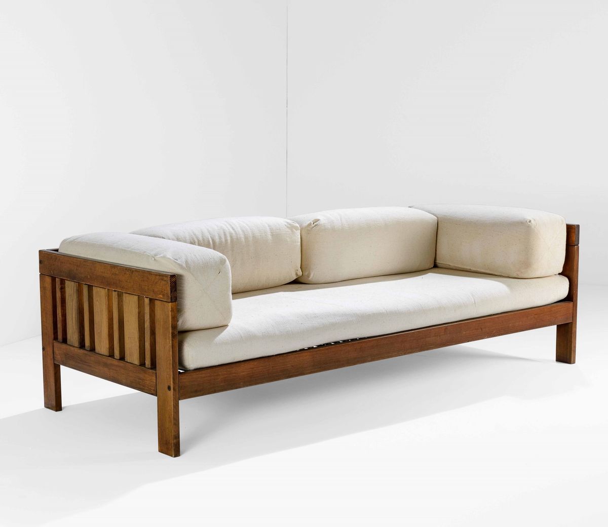 Divano mod. Califfo con struttura in legno e rivestimenti in tessuto.
