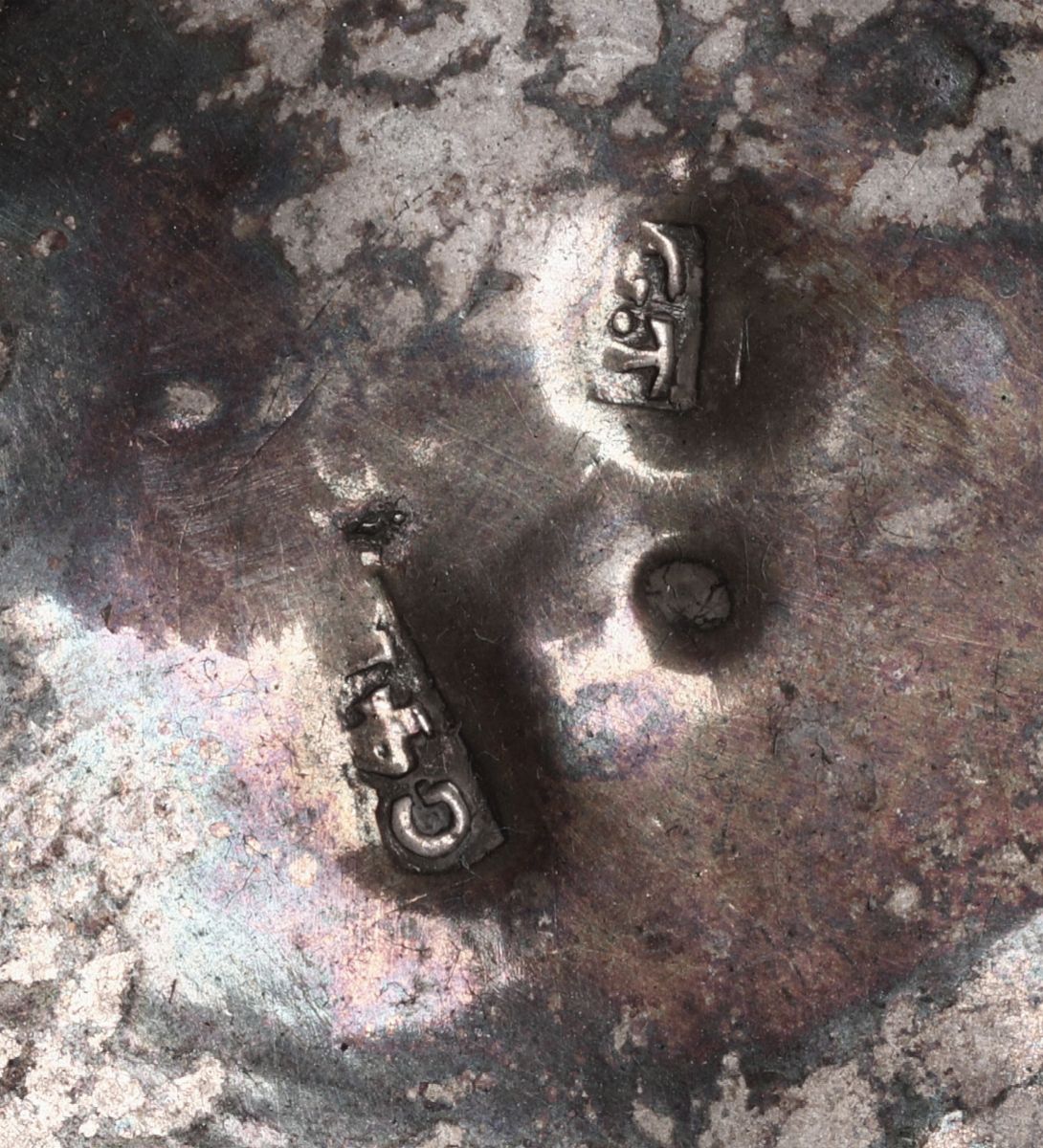 Embossed, chiselled and perforated silver and glass cruets. 375gr net weight, 19x13x24cm