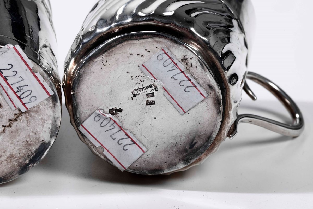 Boccale e bicchiere in argento. Boccale bolli di importazione francese XIX-XX secolo. Bicchiere Asburg XVIII secolo (1763?)