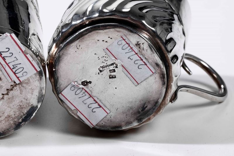 Boccale e bicchiere in argento. Boccale bolli di importazione francese XIX-XX secolo. Bicchiere Asburg XVIII secolo (1763 [..]