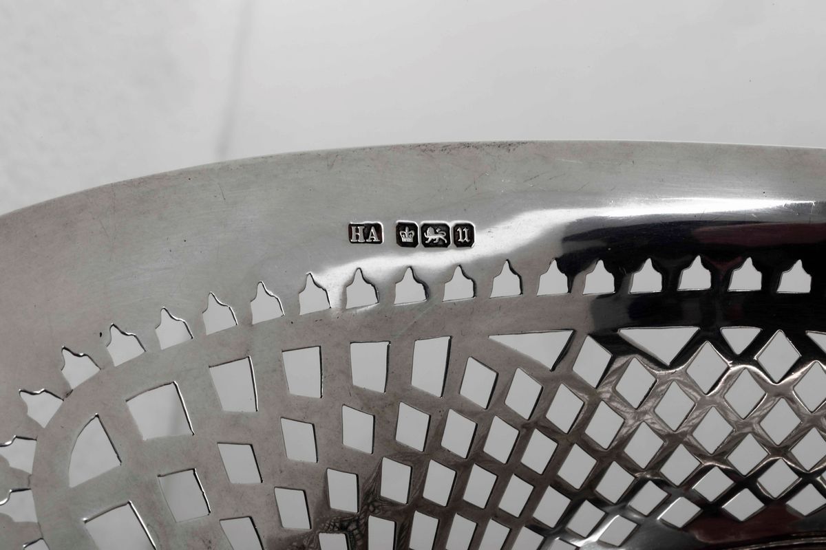 Cestino in argento fuso e traforato. Argenteria inglese, 1905. MArchi della città di Sheffield e dell’argentiere Atkin Brothers o Archer Machin & Marsh