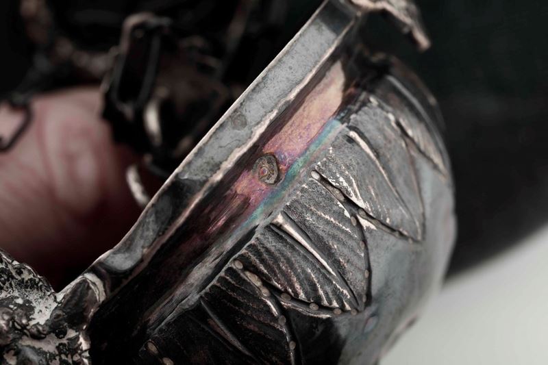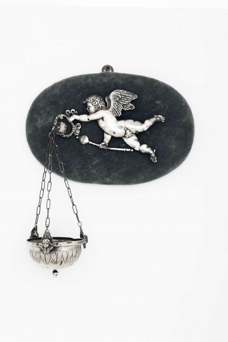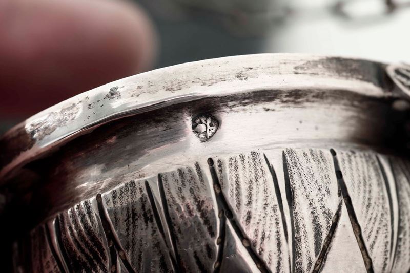 Coppia di acquasantiere in argento sbalzato e cesellato Stato pontificio XIX secolo.