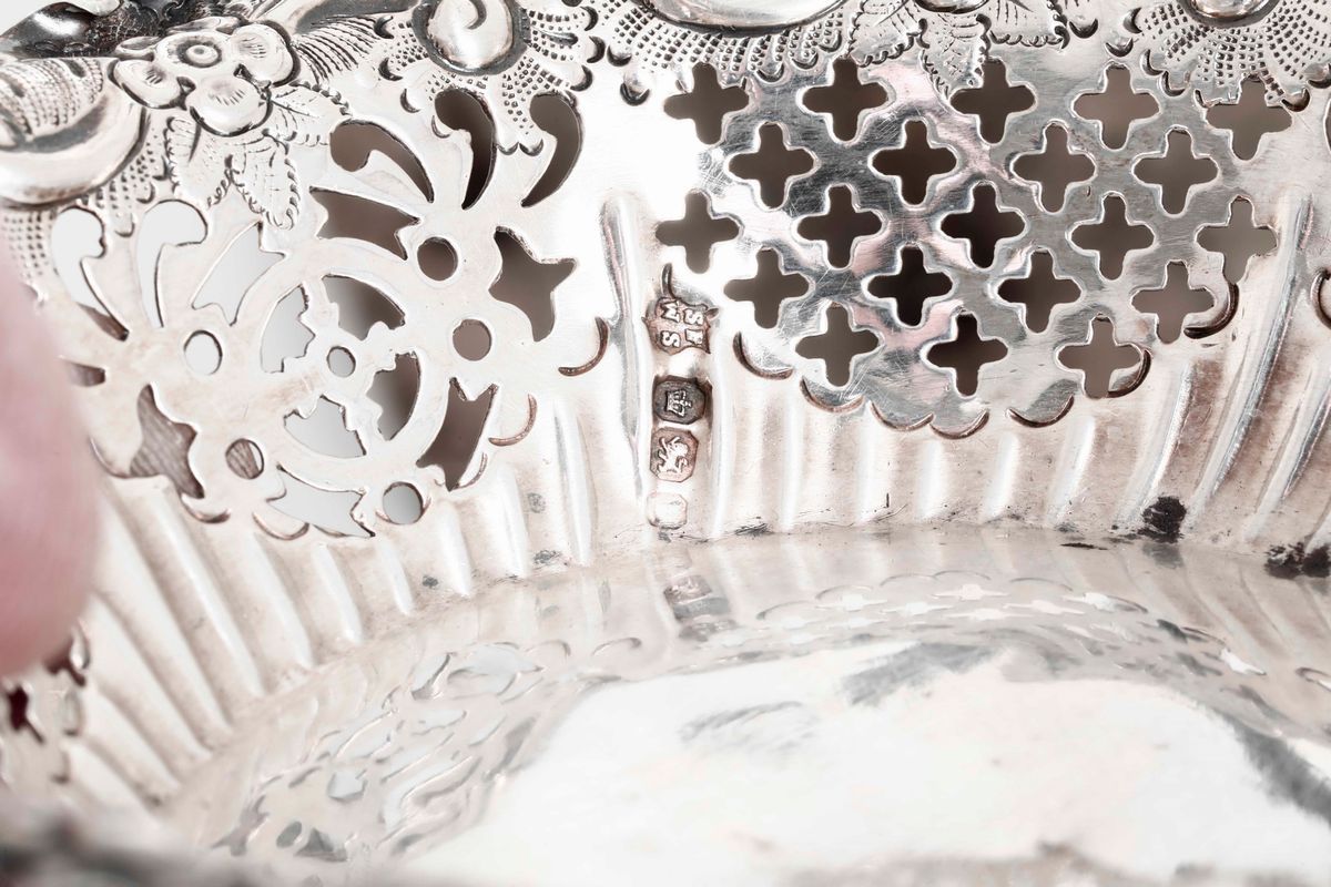 Insieme di ciotola con fiori, ciotola traforata e oliera in stile neoclassico (senza vetri). Differenti manifatture del [..]