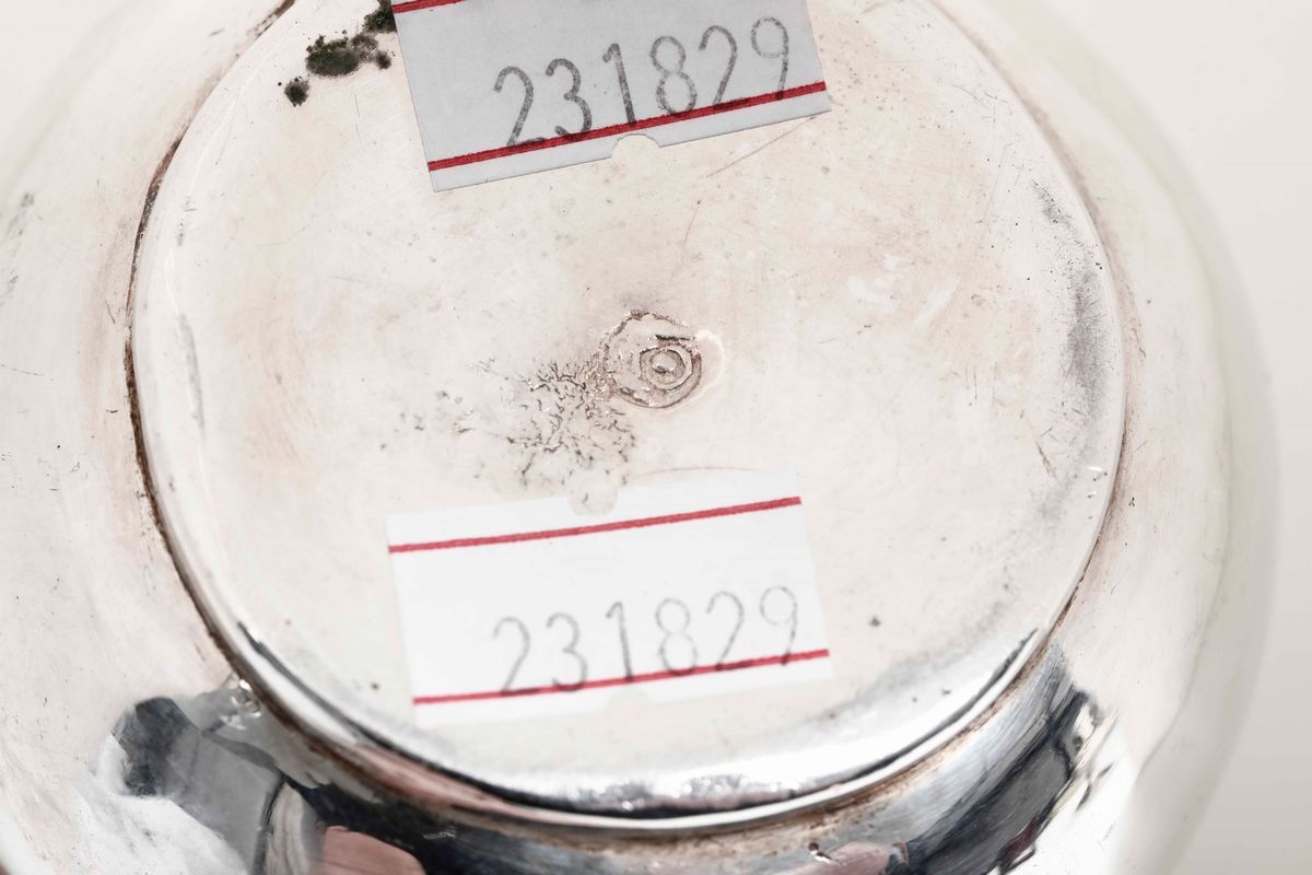 Piccola caffettiera (cuccuma) in argento fuso e sbalzato. Venezia XVIII-XIX secolo