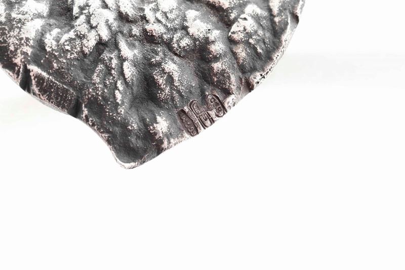 Porta bon bon fatto a mela in vetro e argento. Argenteria milanese del XX secolo. Argentiere De Vecchi.